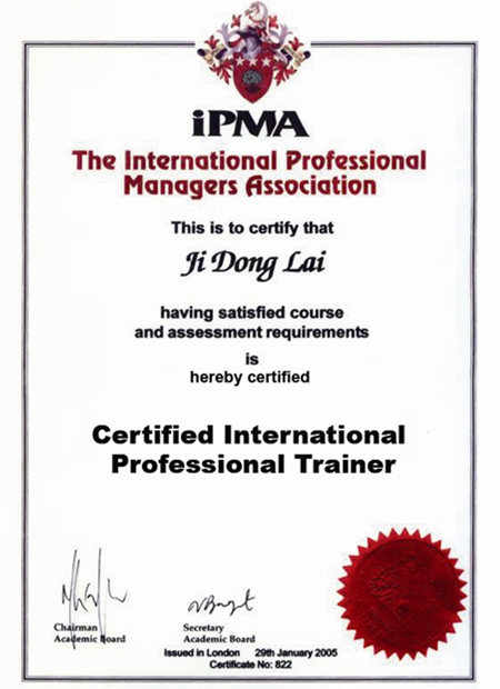 ◆第二张证书:英国IPMA授权颁发的“国际职业培训师CIPMT证书”
